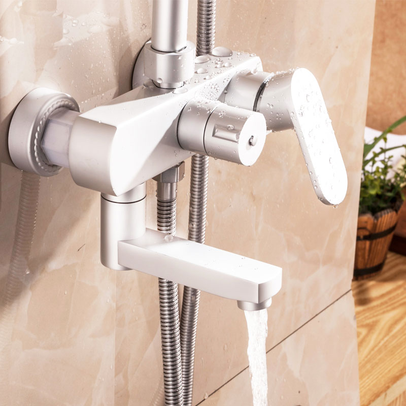 商品名称:超诺淋浴套装 太空铝增压花洒水龙头 三档冷热可升降喷头带下出水 拒绝生锈 十年质保 历久弥新