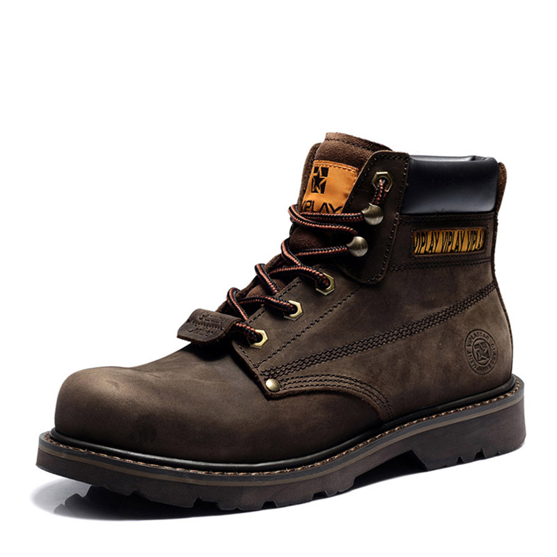 春季马丁靴男真皮男靴黄靴工装军靴韩版短靴沙漠靴高帮男鞋大黄靴 头层牛皮